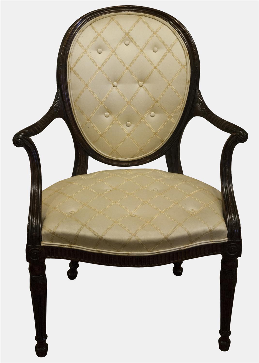 Hepplewhite Period Upholstered Mahogany Elbow Chair (1 of 5)