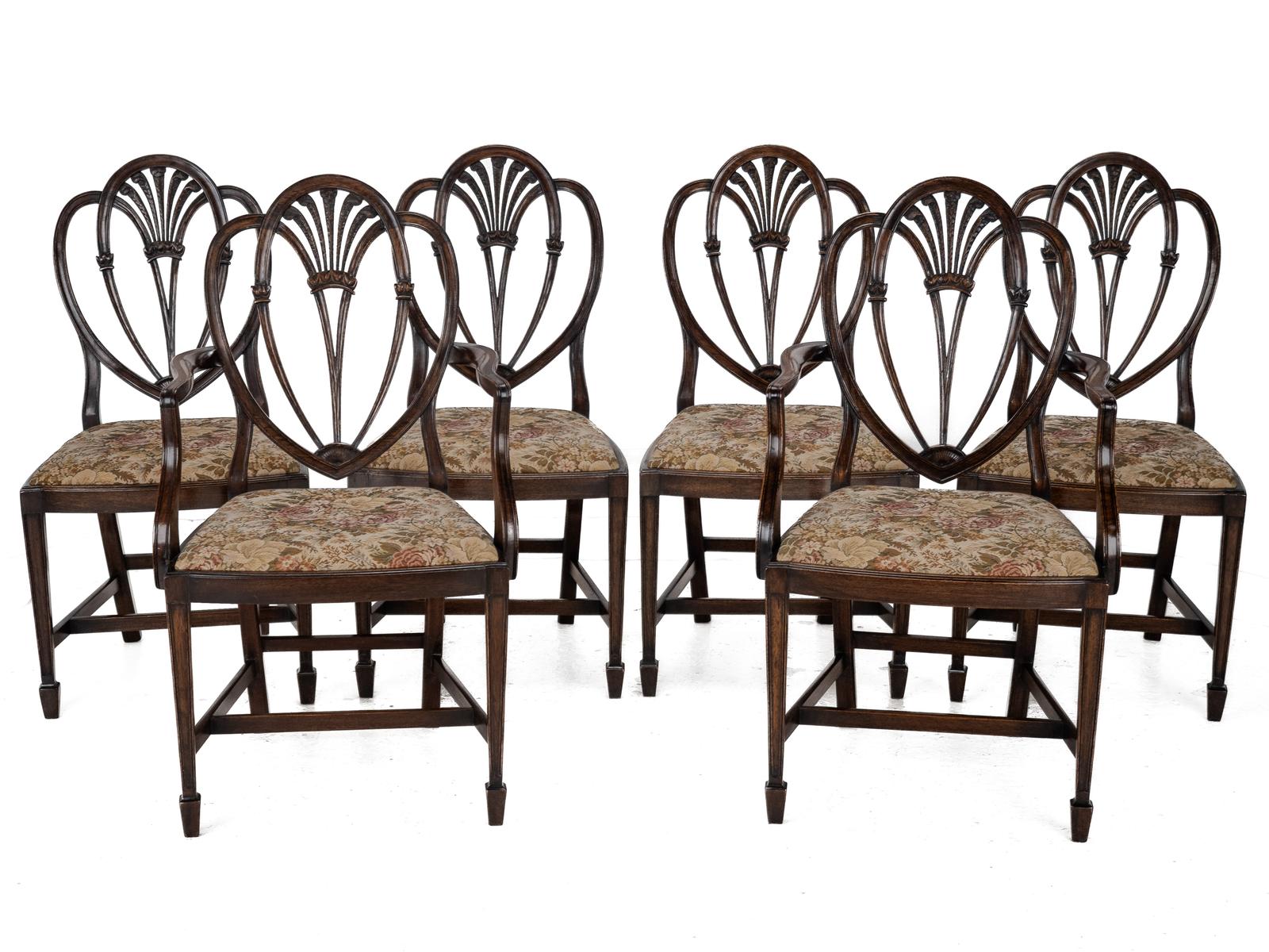 Hepplewhite Style Set of 6 Mahogany Dining Chairs and Carver Armchairs Tapestry Upholstery, Late 19th Century, Victorian