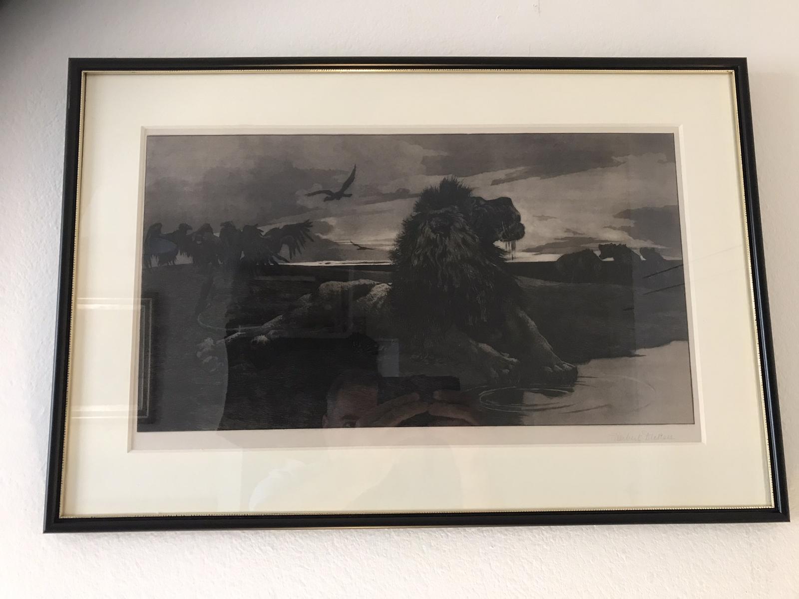 Herbert Dicksee (1862-1942) 'The Dying Lion' Signed Etching