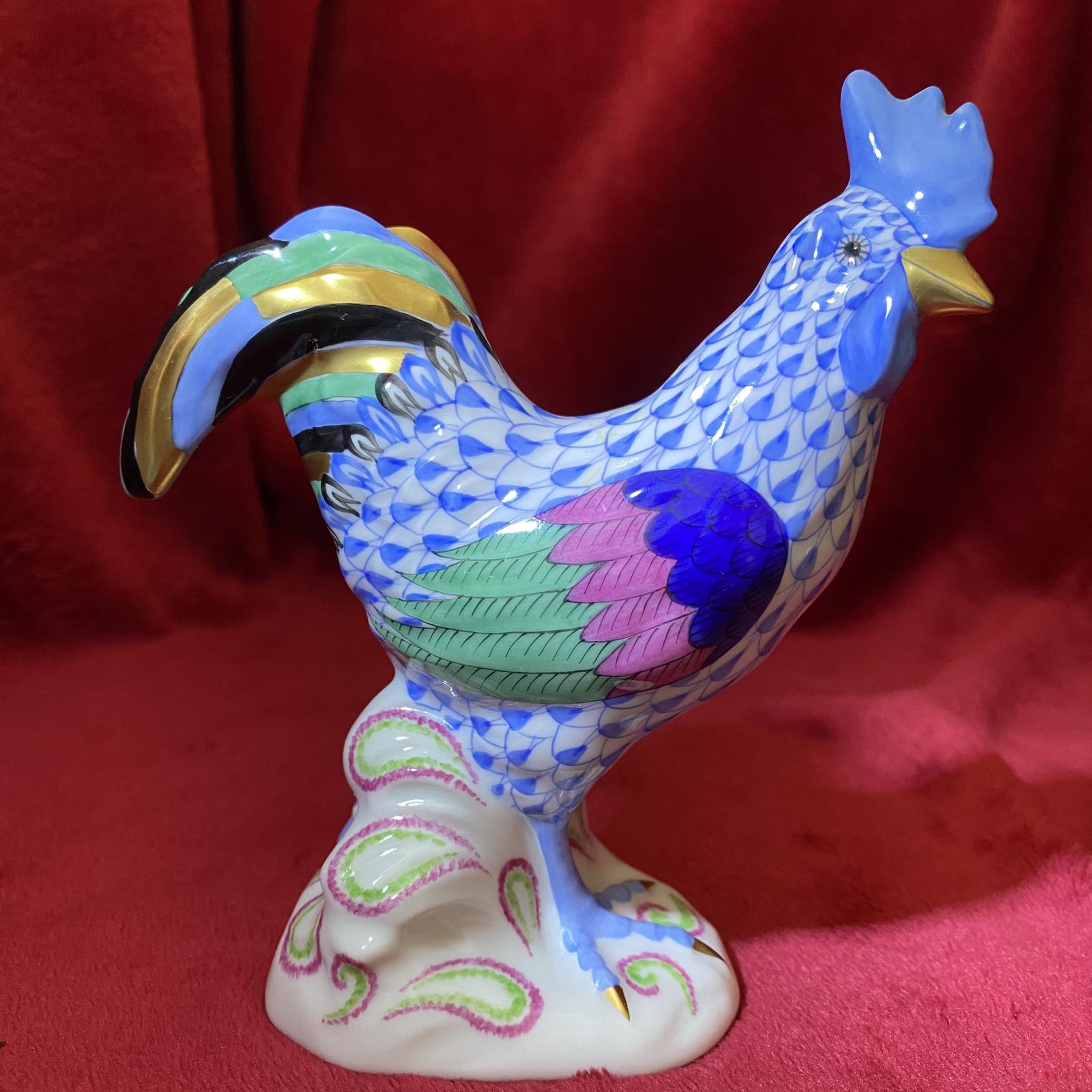 Herend Blue Fishnet Pattern Cockerel with 18k Gold Detail