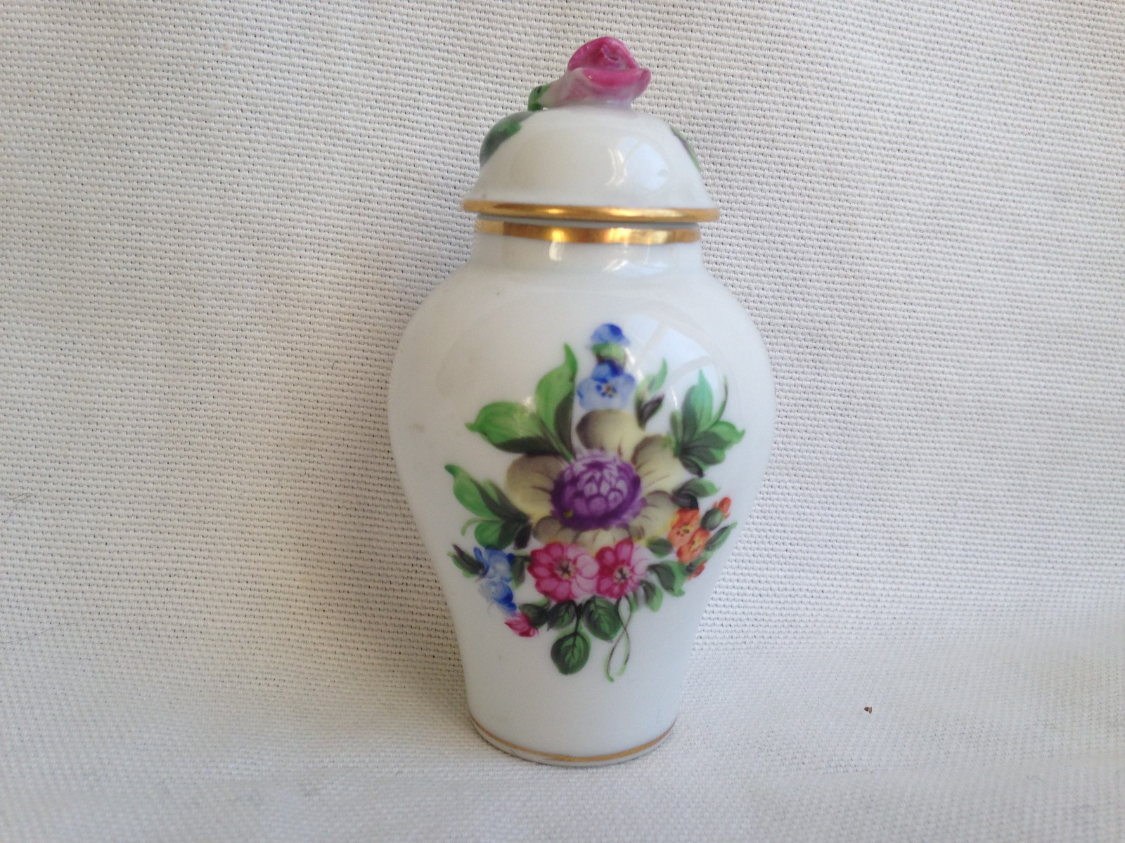 Herend Hand-Painted Porcelain Small Vase with Lid, Dressing Table Holder