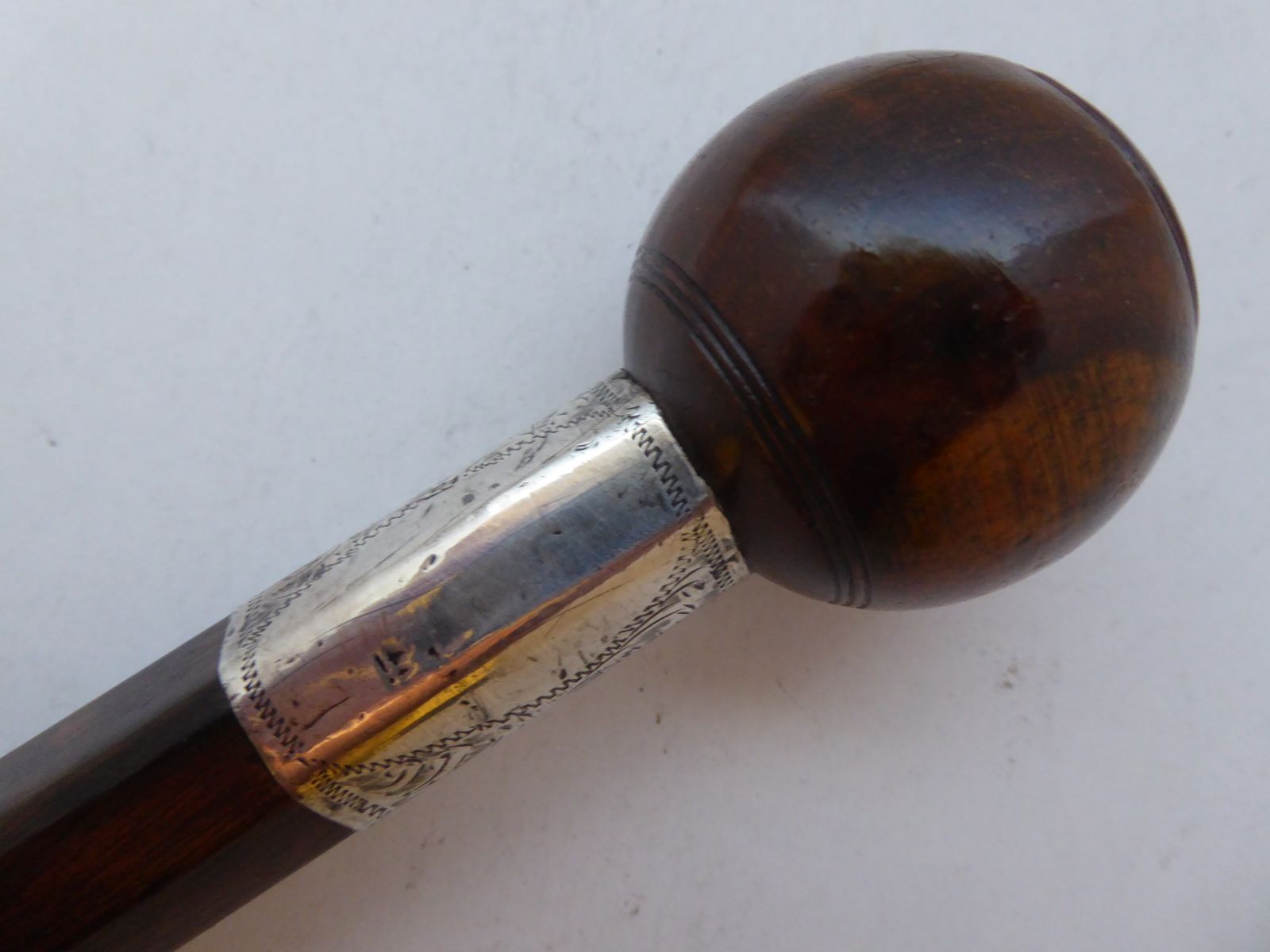 Hexagon Walking Stick Cane 1923 Hallmarked Silver Collar Lignum Vitae Pommel Ash Shaft
