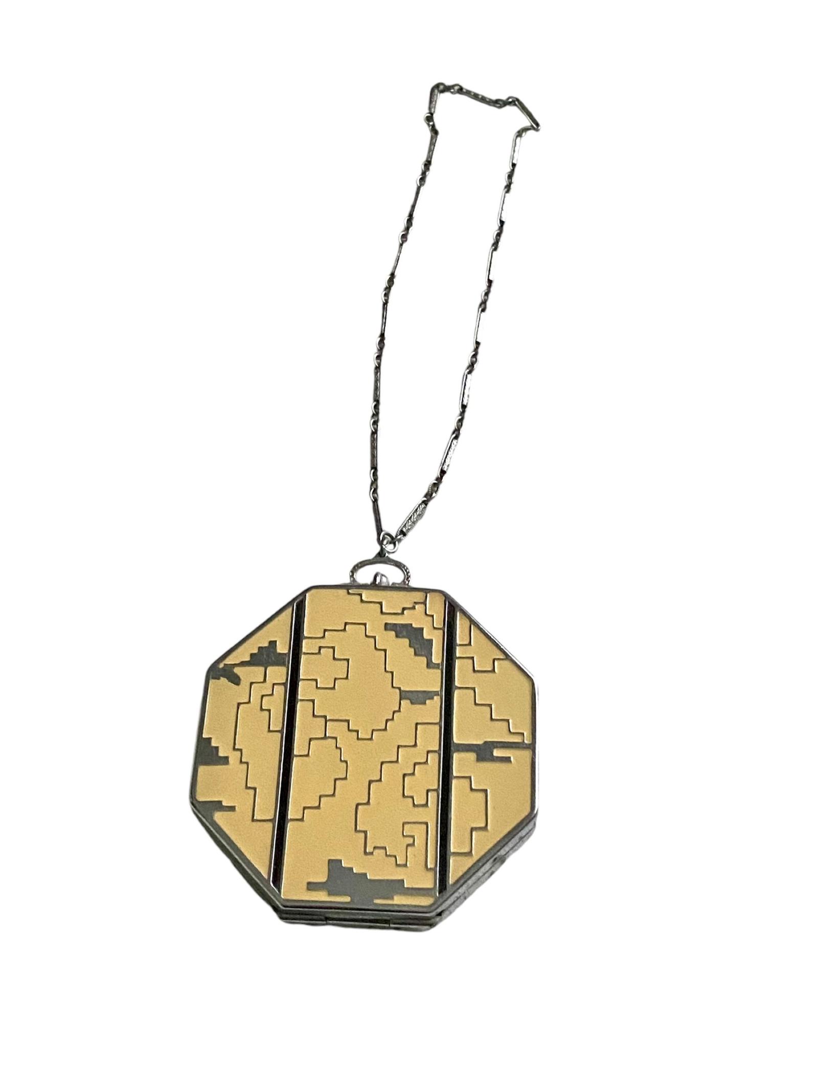 High Art Deco 1920s Enamel Pendant Powder Compact Vanity Case with Wrist Chain