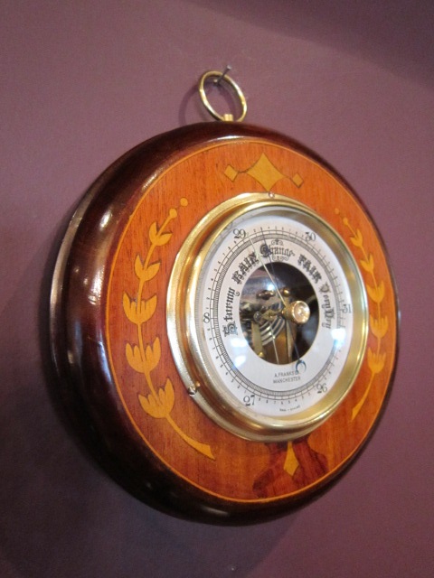 High Quality Edwardian Fruitwood Inlaid Barometer