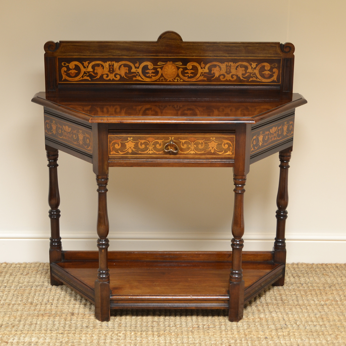 High Quality Walnut Shoolbred Inlaid Antique Side Table / Hall Table