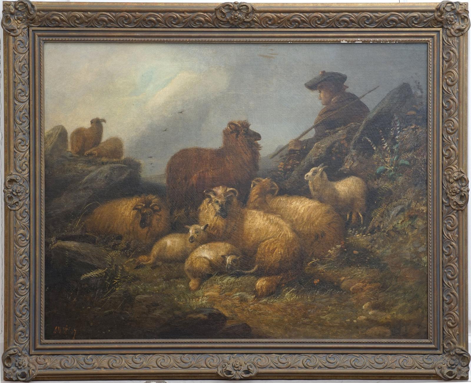 Highland Shepherd & Flock Oil on Canvas by Alfred Morris, 1889