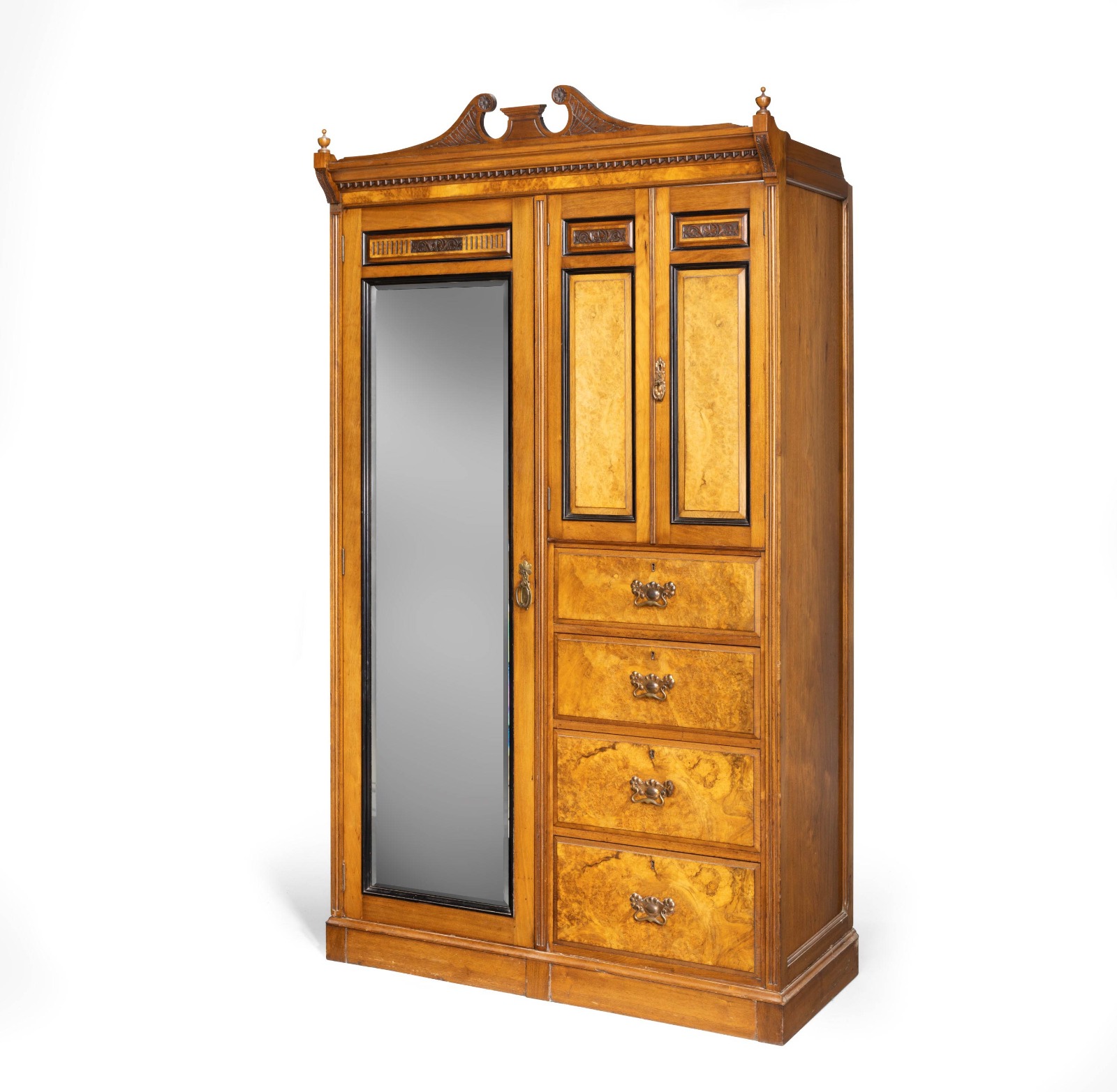 Highly Complex Late 19th Century Gentleman's Burr Walnut & Maple Wardrobe