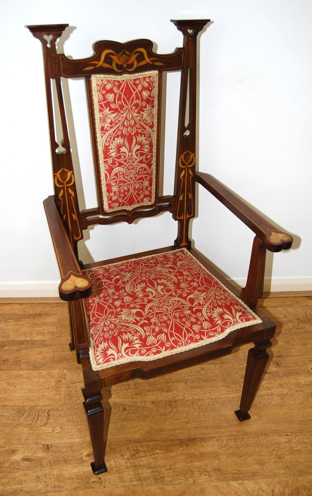 Highly Decorative Arts & Crafts / Art Nouveau Inlaid Elbow Chair