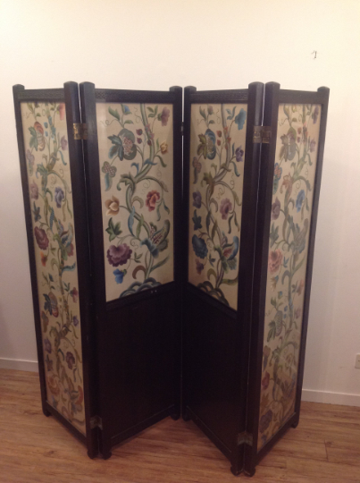 Highly Detailed Arts & Crafts Style 4 Fold Embroidery Screen, Signed H M Newton 1939 by Repute Ex Jesus College Oxford