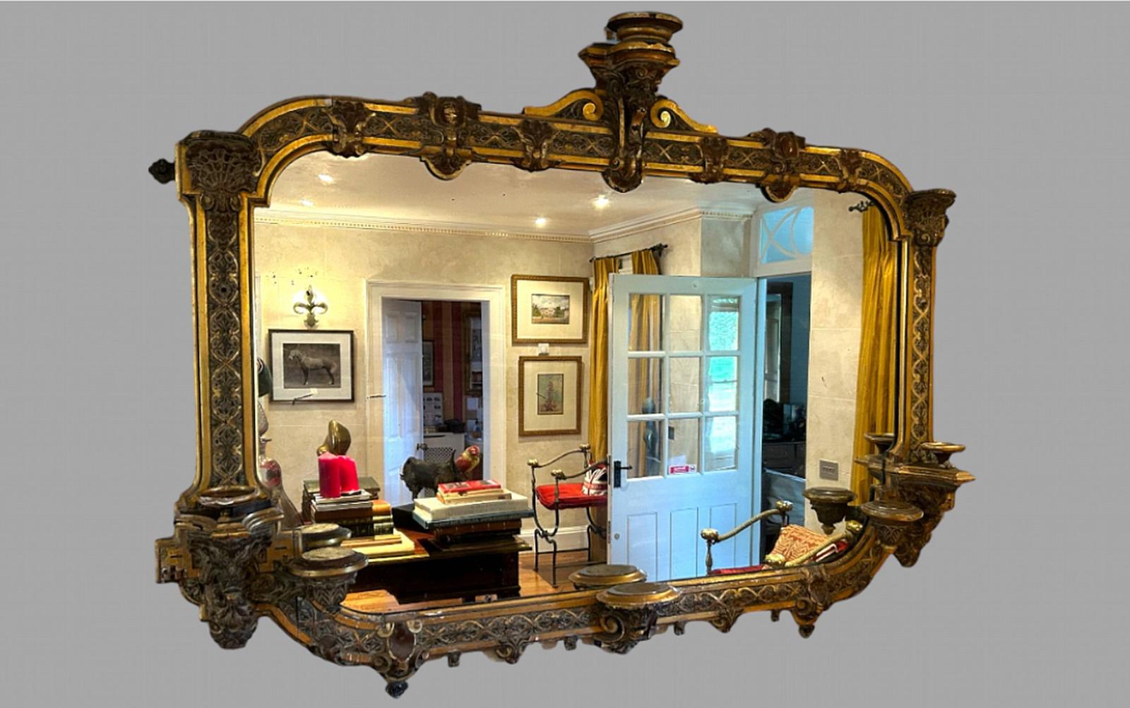 Highly Impressive French Walnut & Parcel Gilt Large Mirror