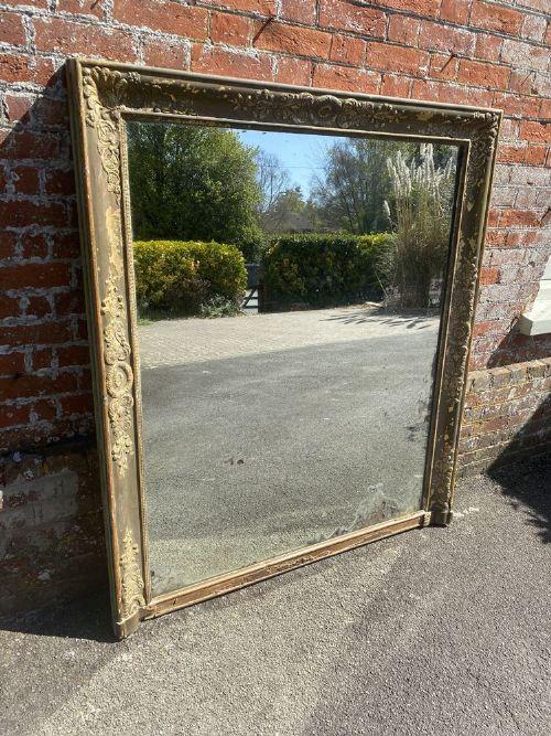 Highly Impressive Large Antique French 19th Century Carved Wood & Gesso Original Distressed Painted & Gilt Louis Philippe Mirror