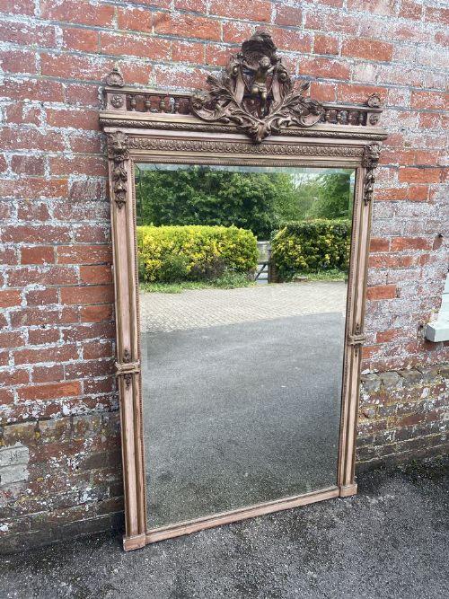 Highly Impressive Large Antique French 19th Century Carved Wood & Gesso Original Gilt & Painted Mirror