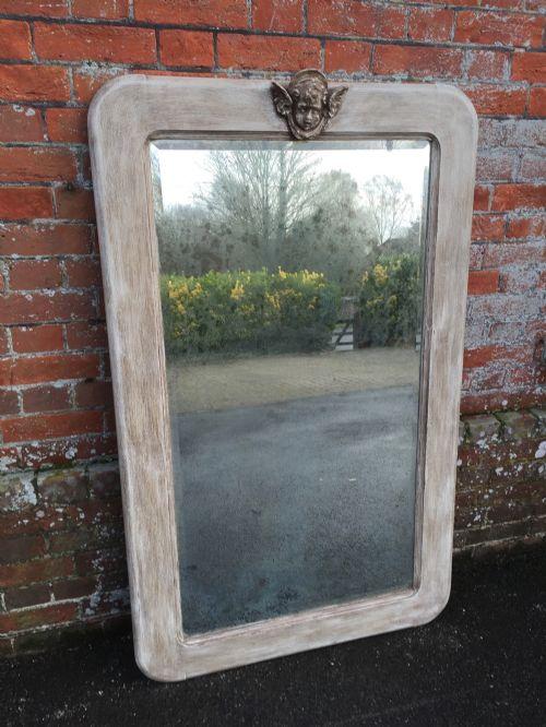 Highly Unusual Antique 19th Century French Carved Wood Painted Plain Curved Framed Mirror