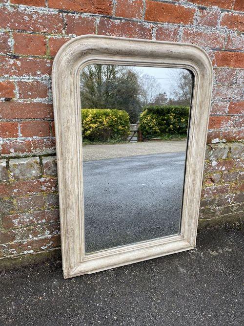 Highly Useful Size Antique French 19th Century Carved Wood & Gesso Painted Arched Top Louis Philippe Mirror