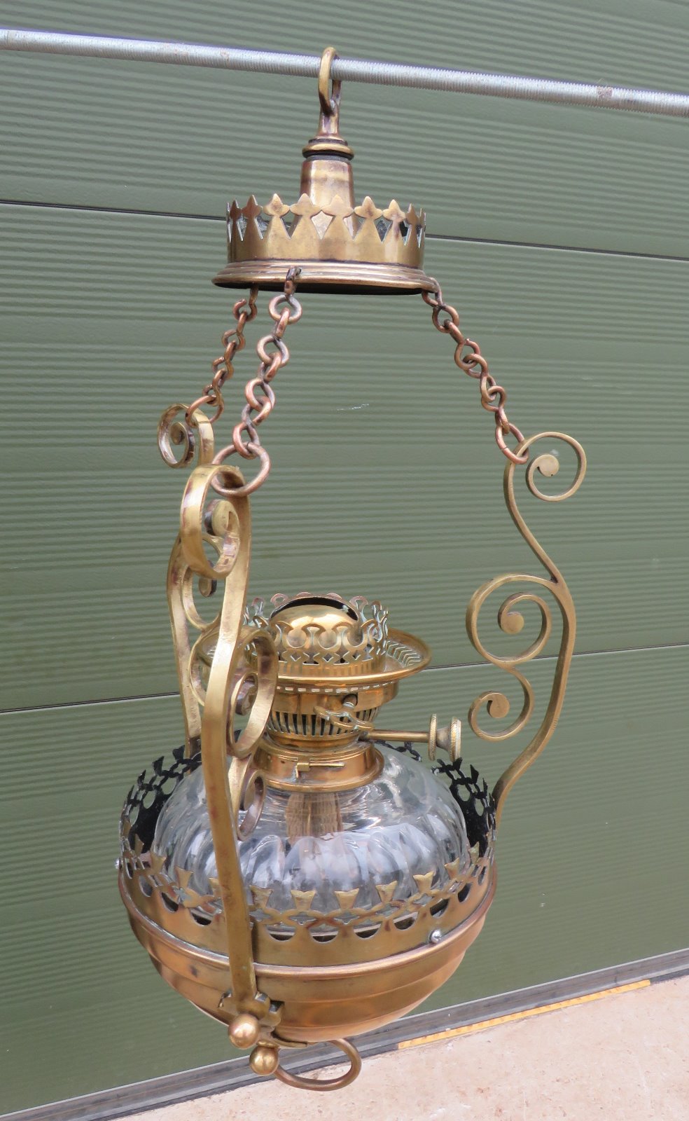 Hinks Hanging Brass & Glass Oil Lamp Duplex Burner