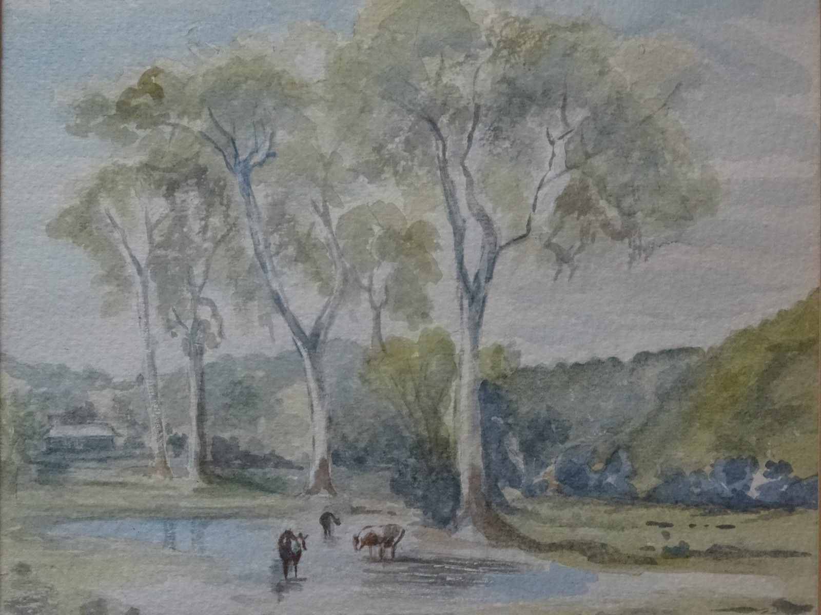 'H.M Howarth' Worcestershire Cattle Landscape Watercolour Painting - Mid 20th Century