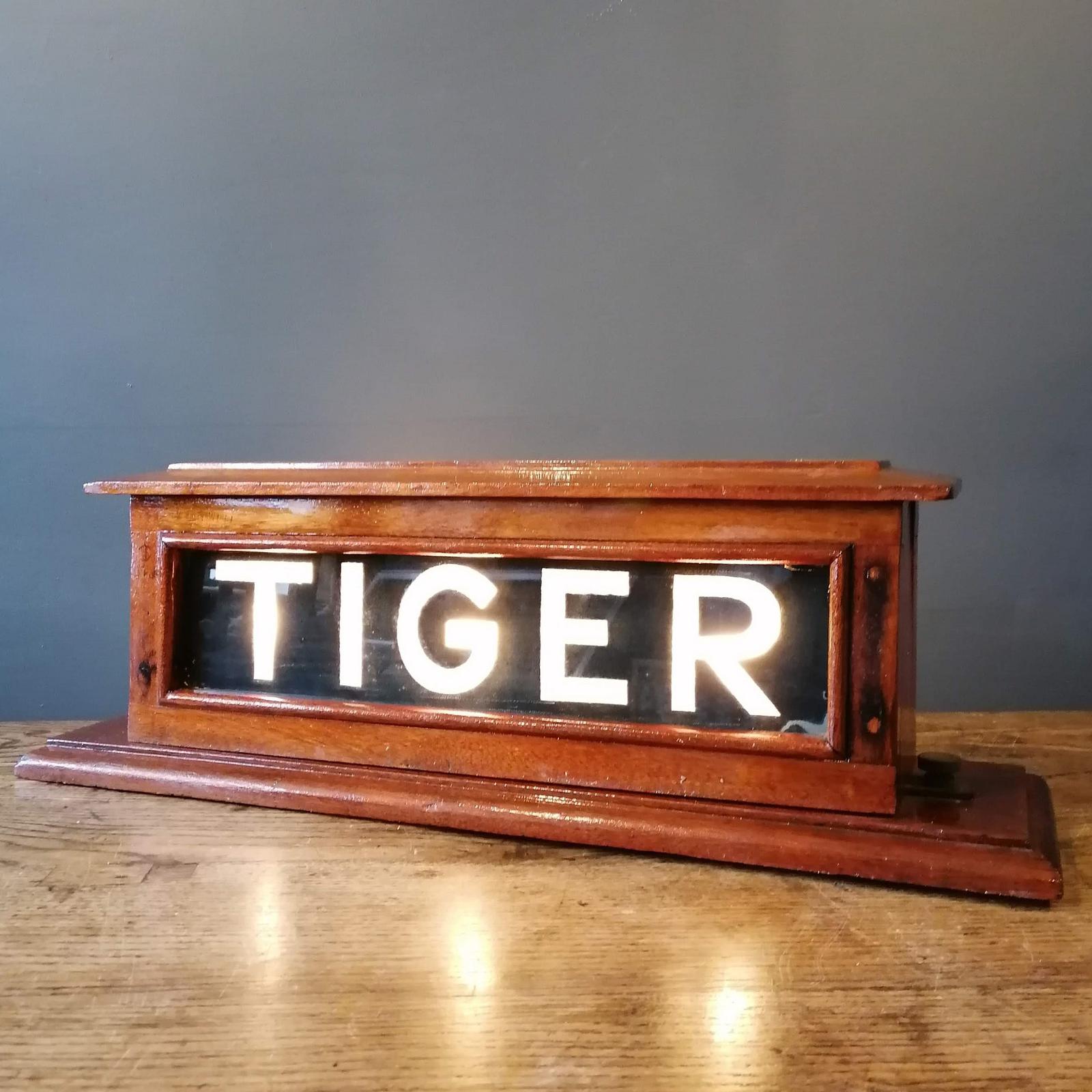 HMS TIGER Mahogany framed illuminated sign. Mid 20th Century militaria