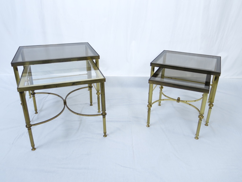 Hollywood Regency Style Set of 4 Matching Brass & Glass Top Tables