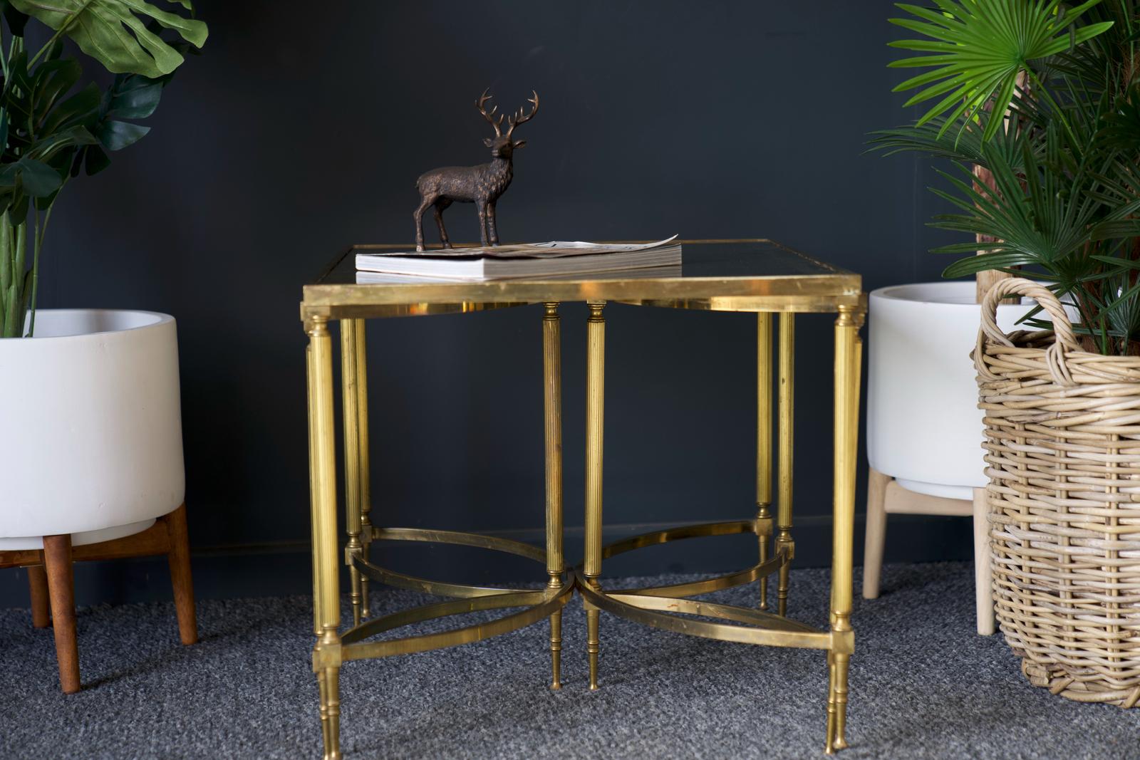 Hollywood Revival Brass Coffee Table & D-shape Side Tables 1970s