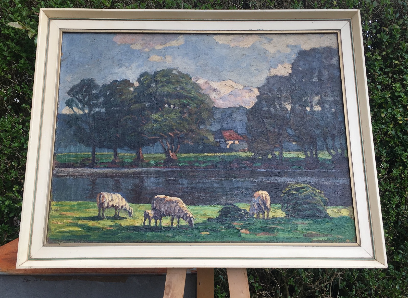 Hubert Cramer Berke Large Oil Painting C.1925 German River Landscape