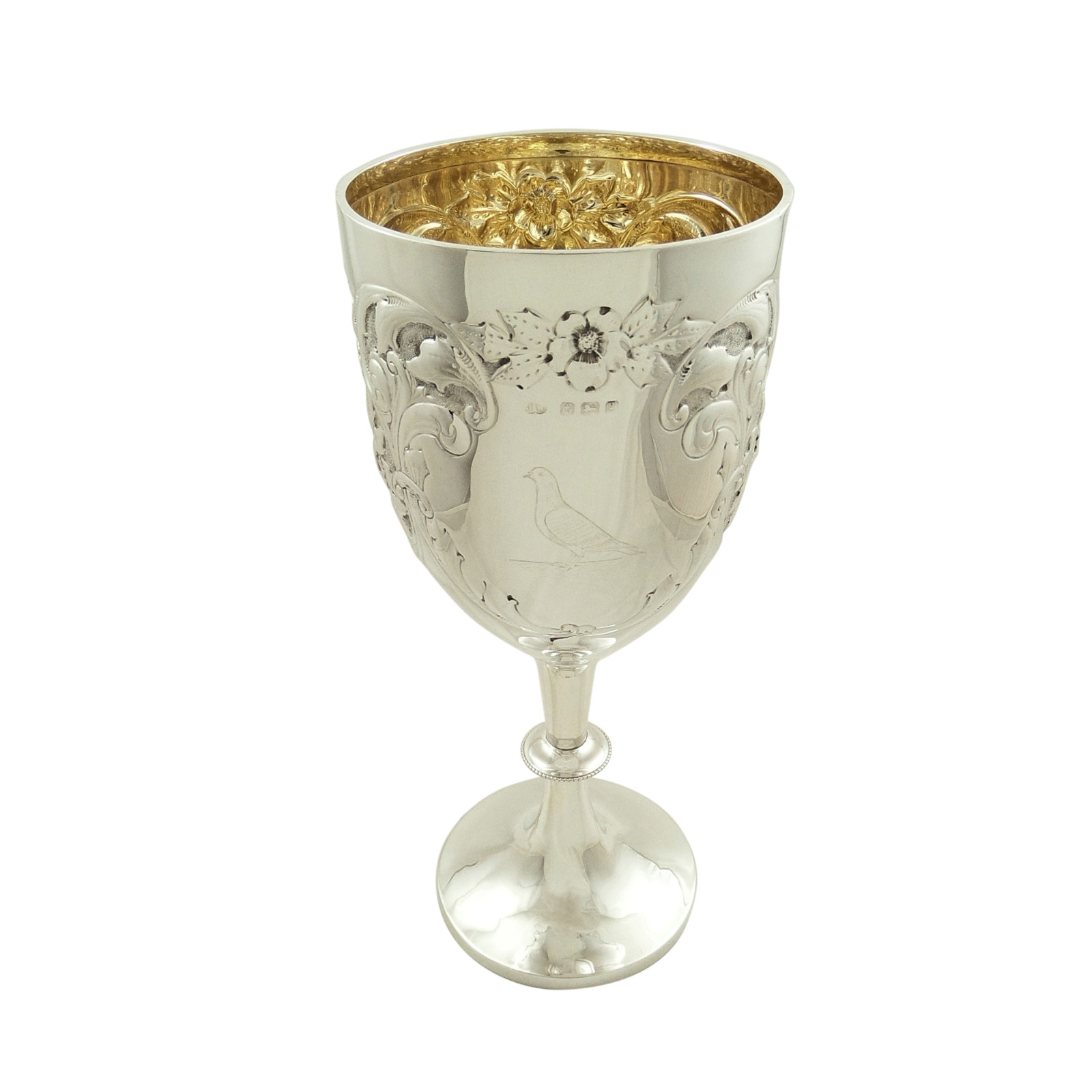 Huge Antique Edwardian Sterling Silver 1 1/2 Pint 'Bird' Wine Goblet