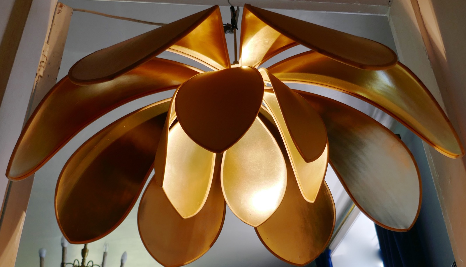 Huge French Mid Century Modern Gold Lined Flower Lamp Shade