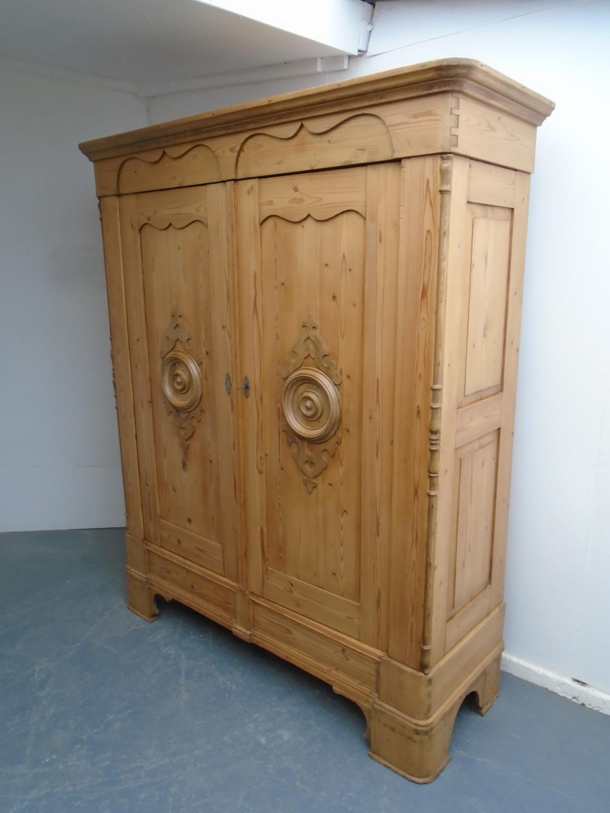 Huge Georgian Antique Pine Waxed Ladies 2 Door Knockdown Wardrobe