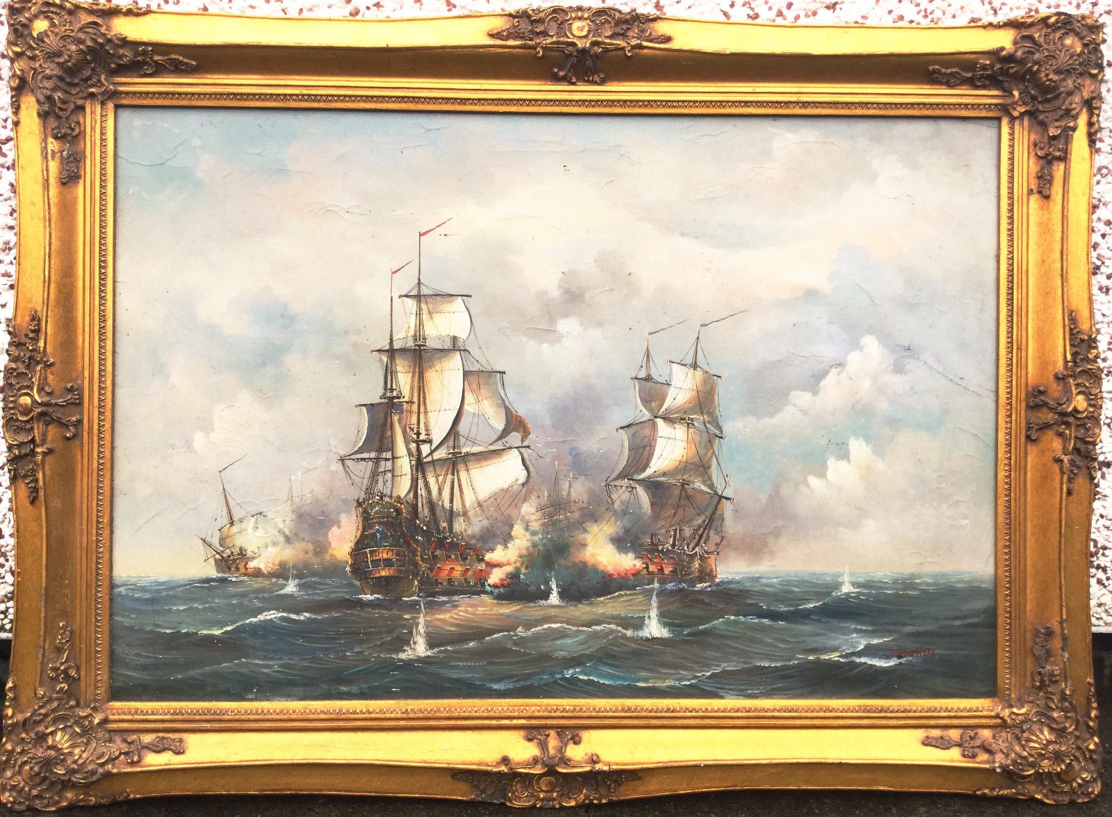 Huge Oil Painting of the Battle of Trafalgar 44" x 32"