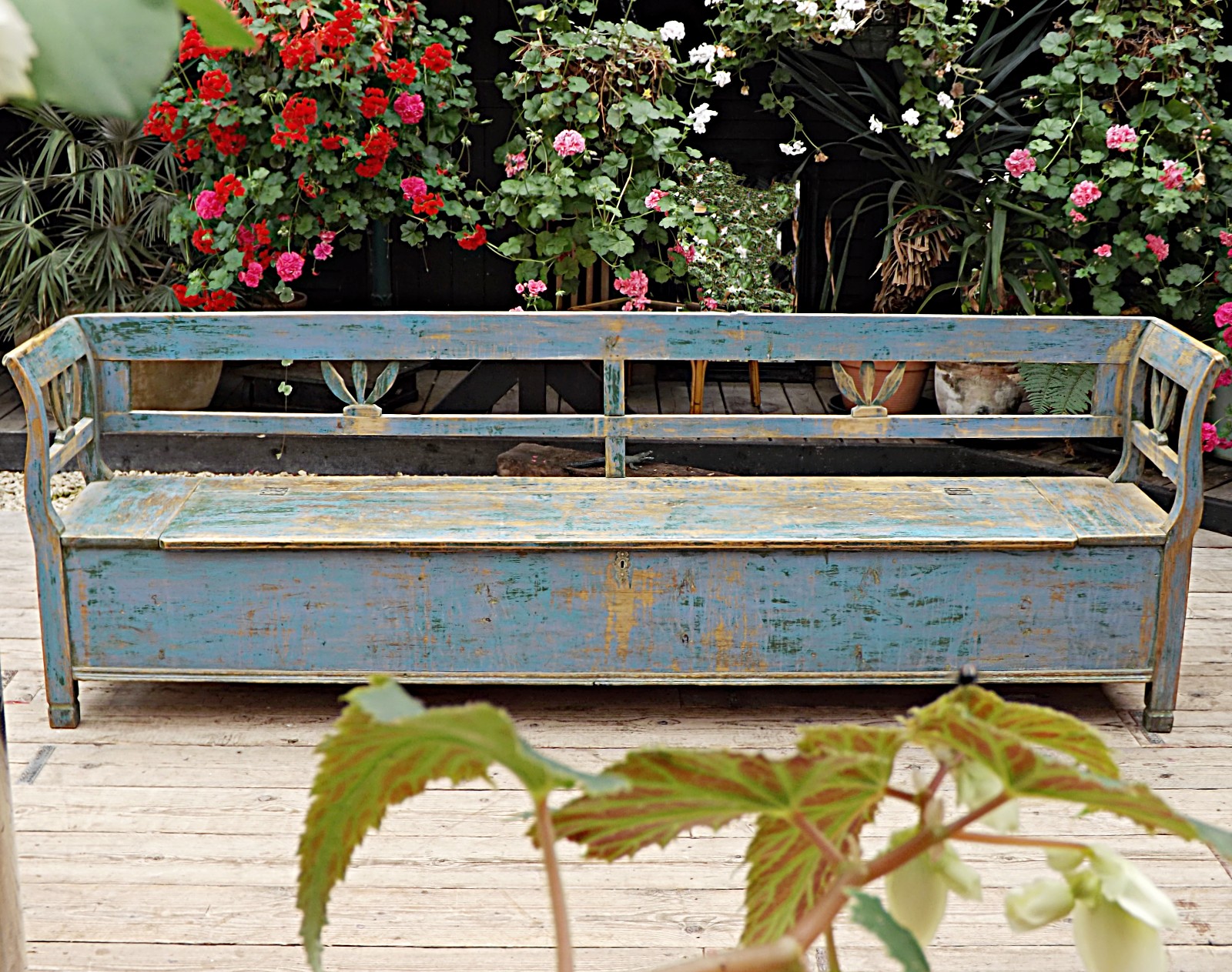 Huge! Old Antique Pine / Painted Hungarian Box / Storage Bench / Settle- We Deliver!