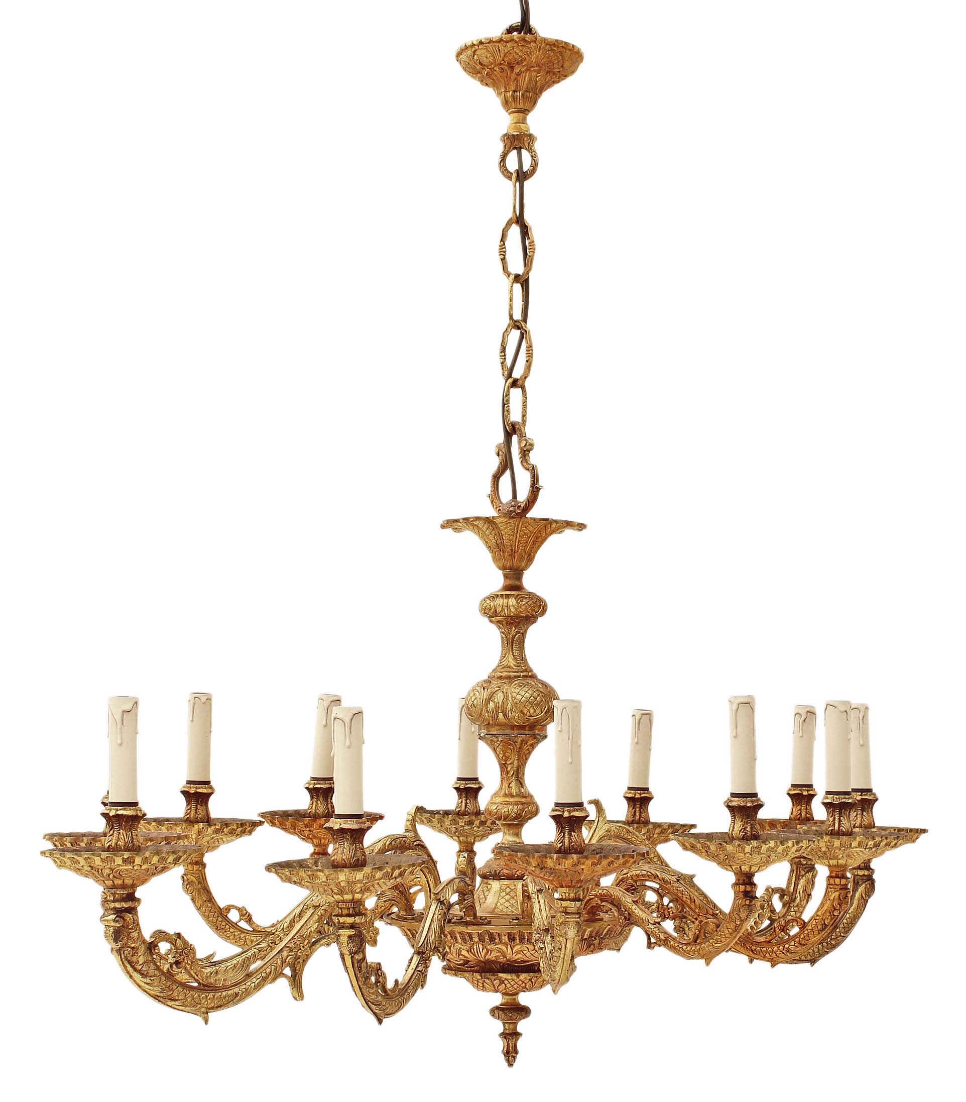 Huge Oval 12 Lamp Ormolu Brass Spanish Chandelier (1 of 1)