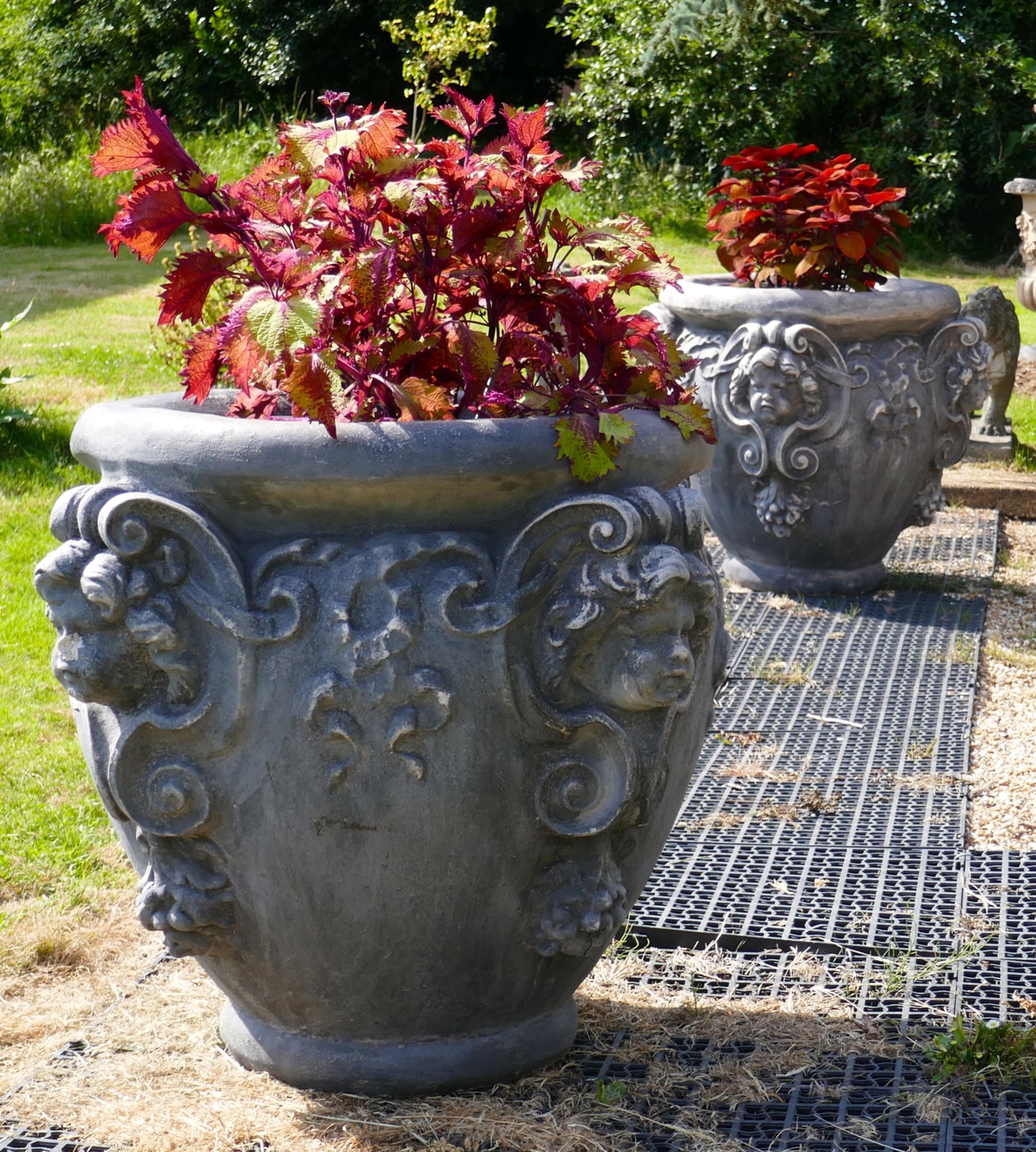 Huge Pair of Baroque Garden Urns Carved with Female Gargoyles, Specimen Tree Pots