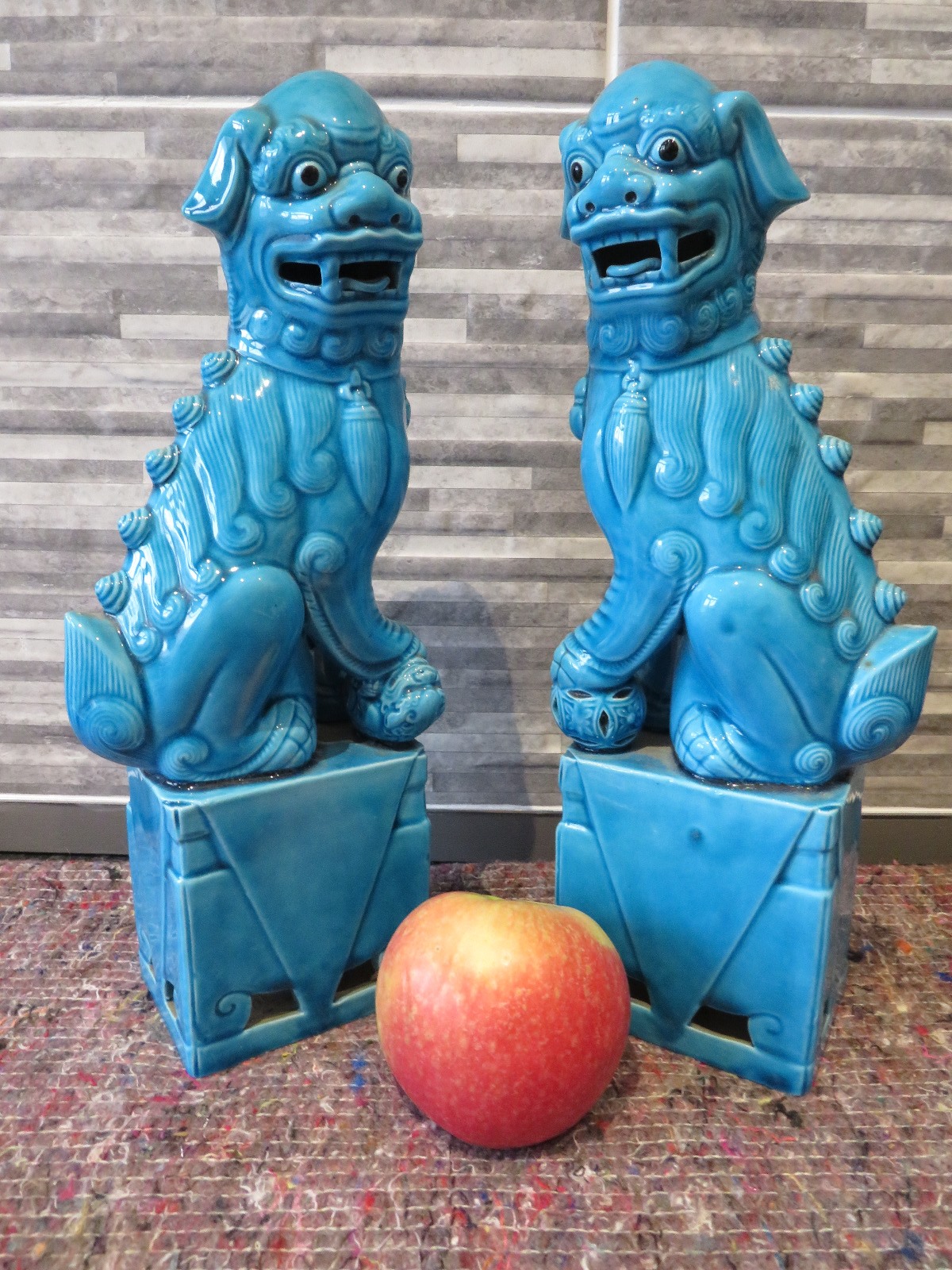 Huge Pair of Chinese Porcelain Dogs of Foo Turquoise Glaze