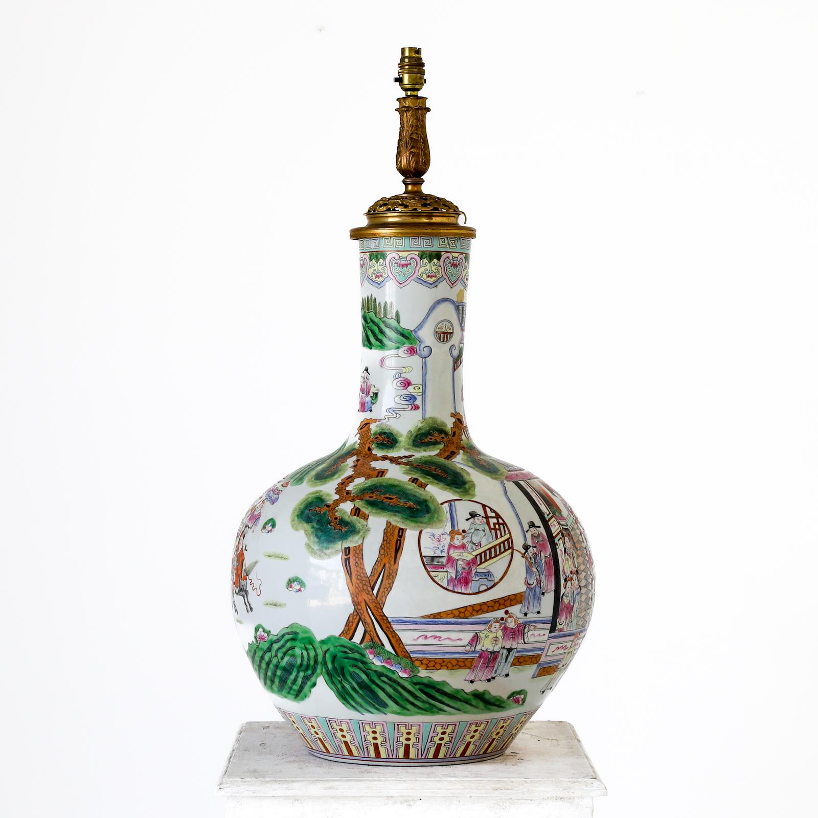 Huge Scale Chinese Famille Rose Bottle Vase Lamp (1 of 8)