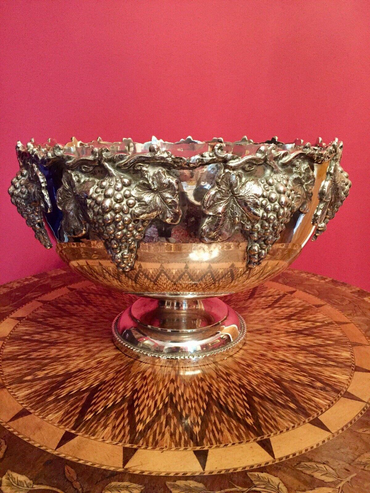 Huge Silver P Punch Bowl Ice Bucket Fine Quality, Grape Repousse Detail WH & Co