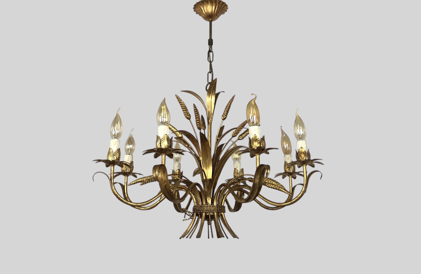 Huge Wheatsheaf 8 Arm Chandelier Gilt Ceiling Light by Masca