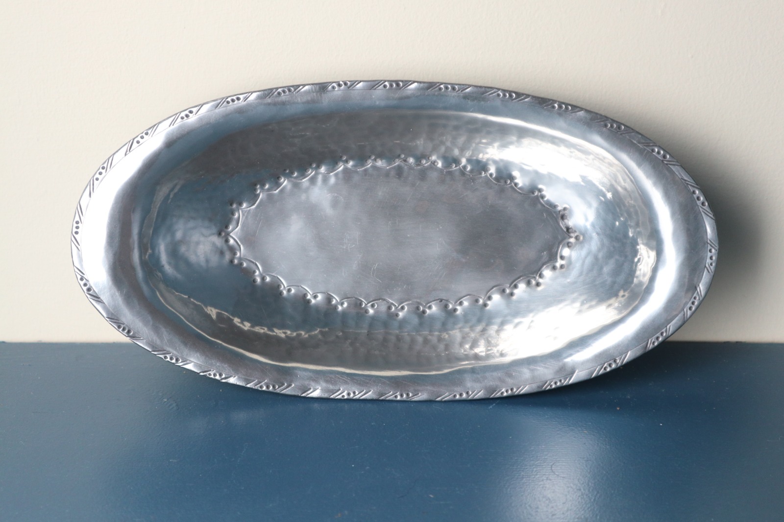 Hugh Wallis Hand Hammered Pewter Oval Dish c.1910-20
