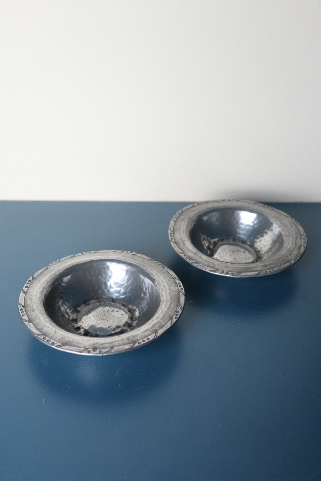 Hugh Wallis Pair of Hand Hammered Pewter Dishes c.1910-1925