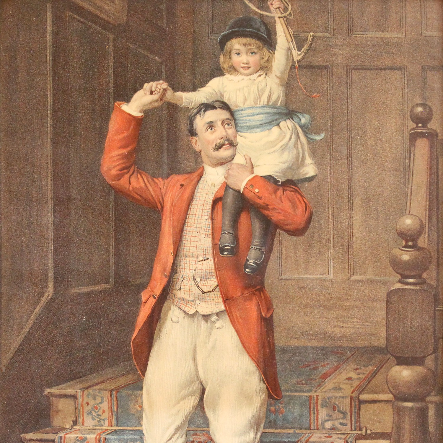 Huntsman & Daughter, Antique English Chromolithograph, Family Scene