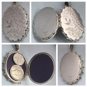 Immaculate Supersized 'Pictorial Engraved' Victorian Silver Locket Hallmarked Birmingham 1882