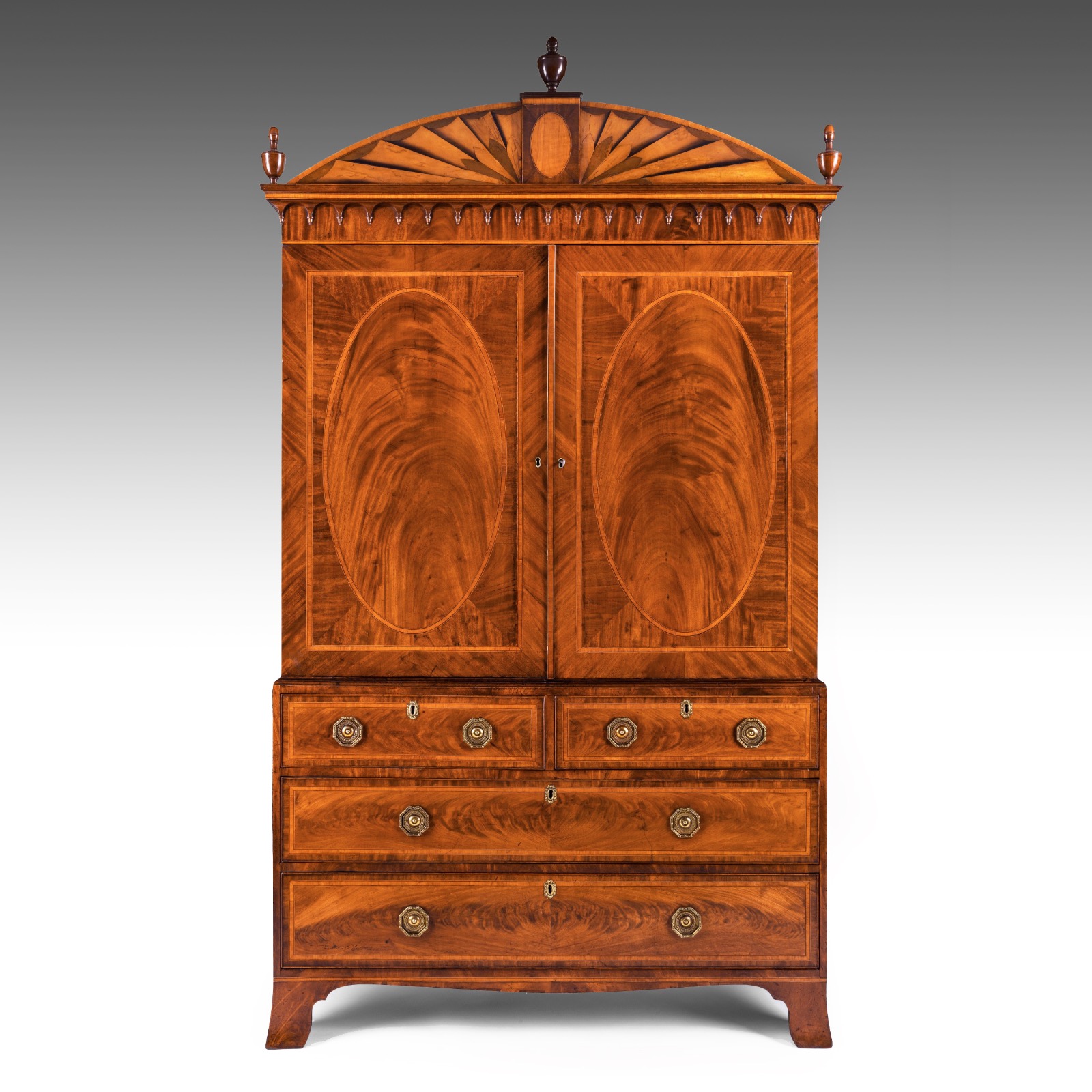 Important Sheraton George III 18th Century Mahogany & Satinwood Linen Press