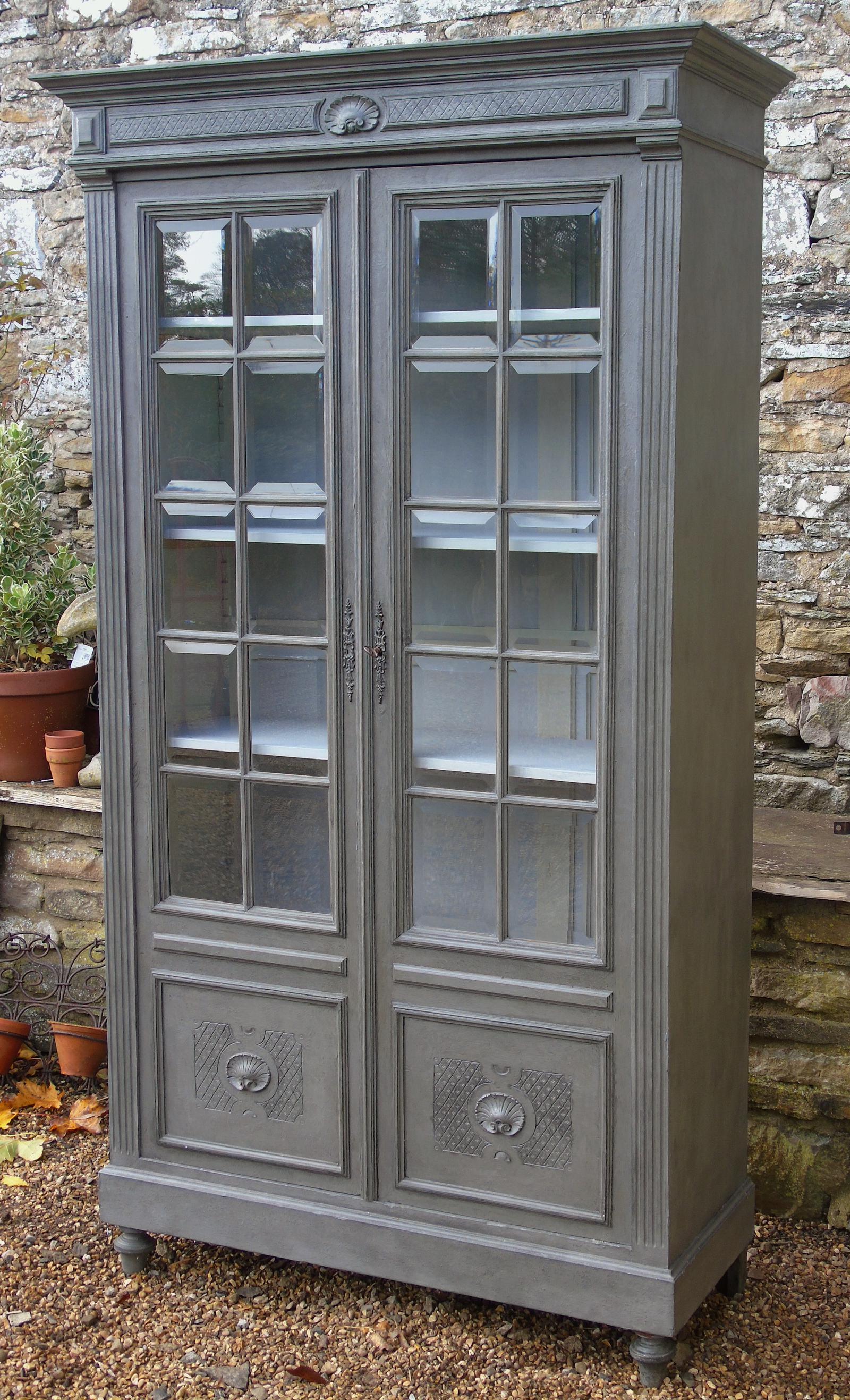 Imposing 19th Century French Glazed & Painted Bookcase Cabinet