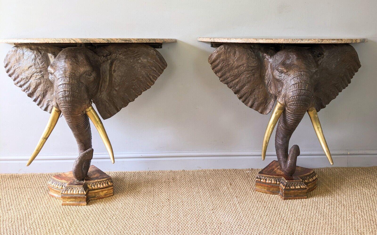 Imposing Pair of Bronze Elephant Head Console Tables