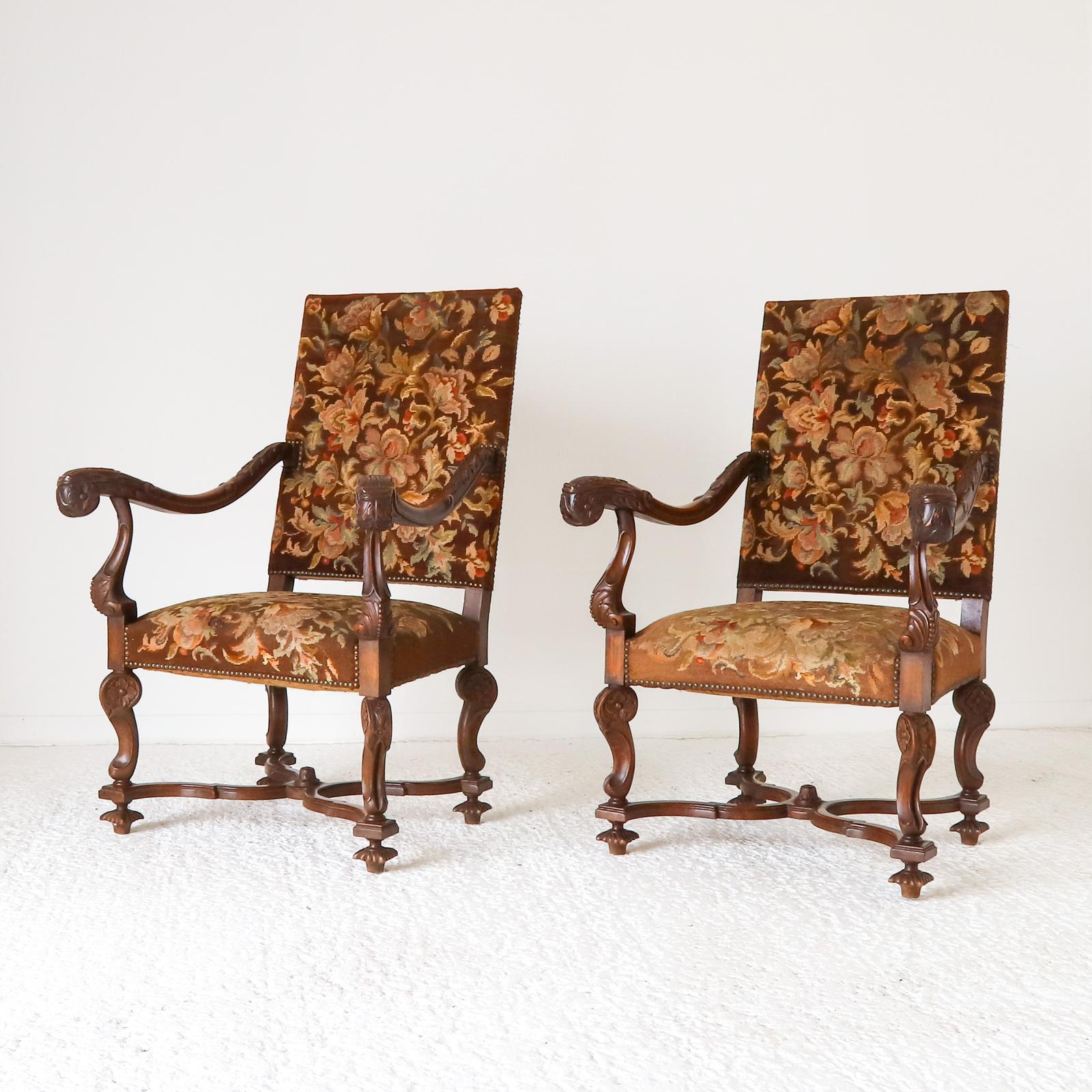 Imposing Pair of French Walnut Throne Chairs (1 of 6)