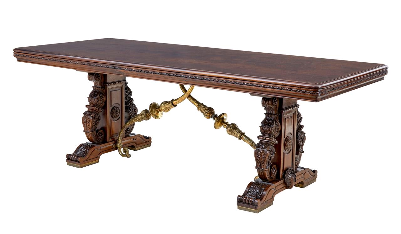 Impressive 19th Century French Carved Walnut & Bronze Dining Table