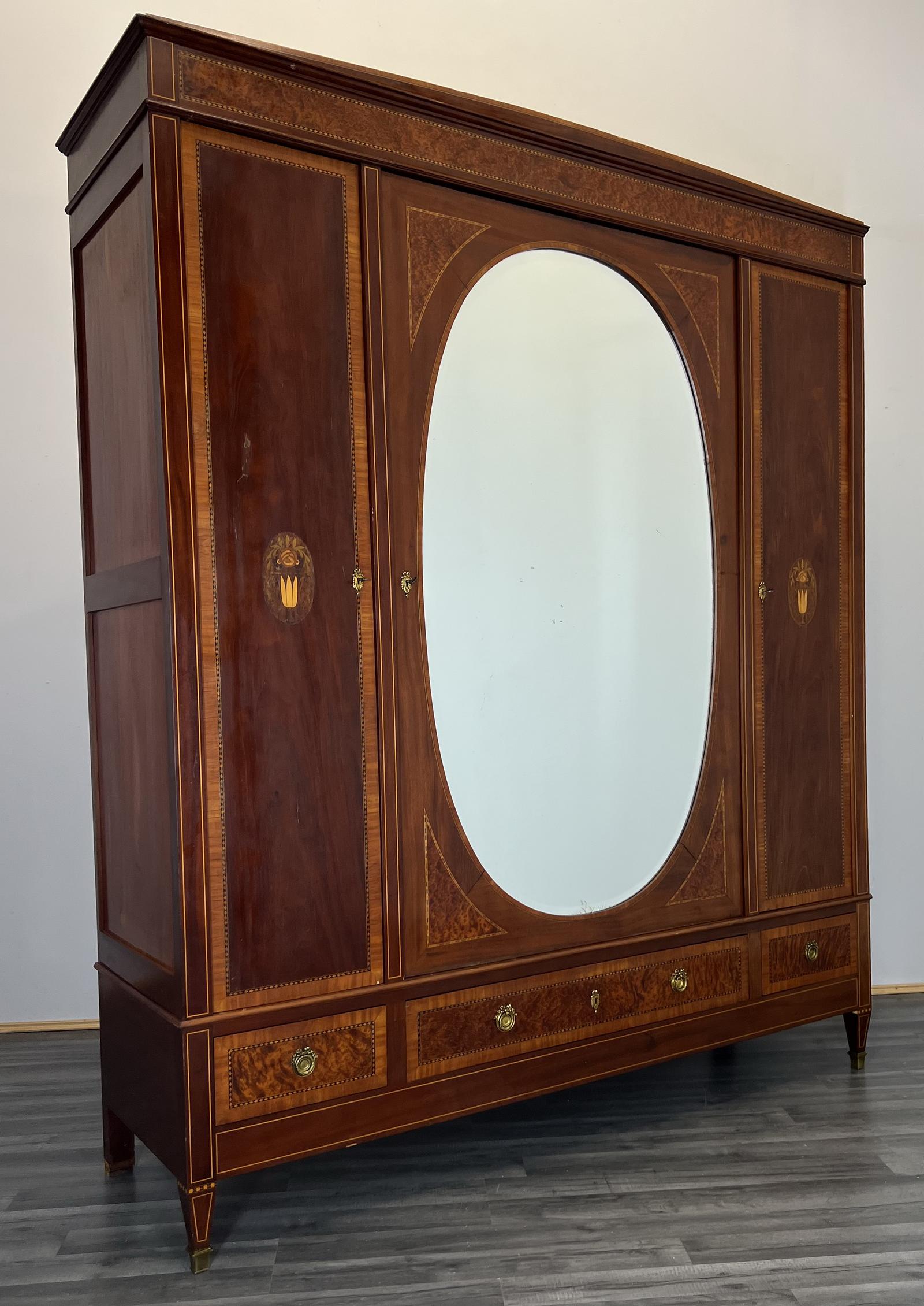 Impressive Antique French Armoire Wardrobe with Mirror