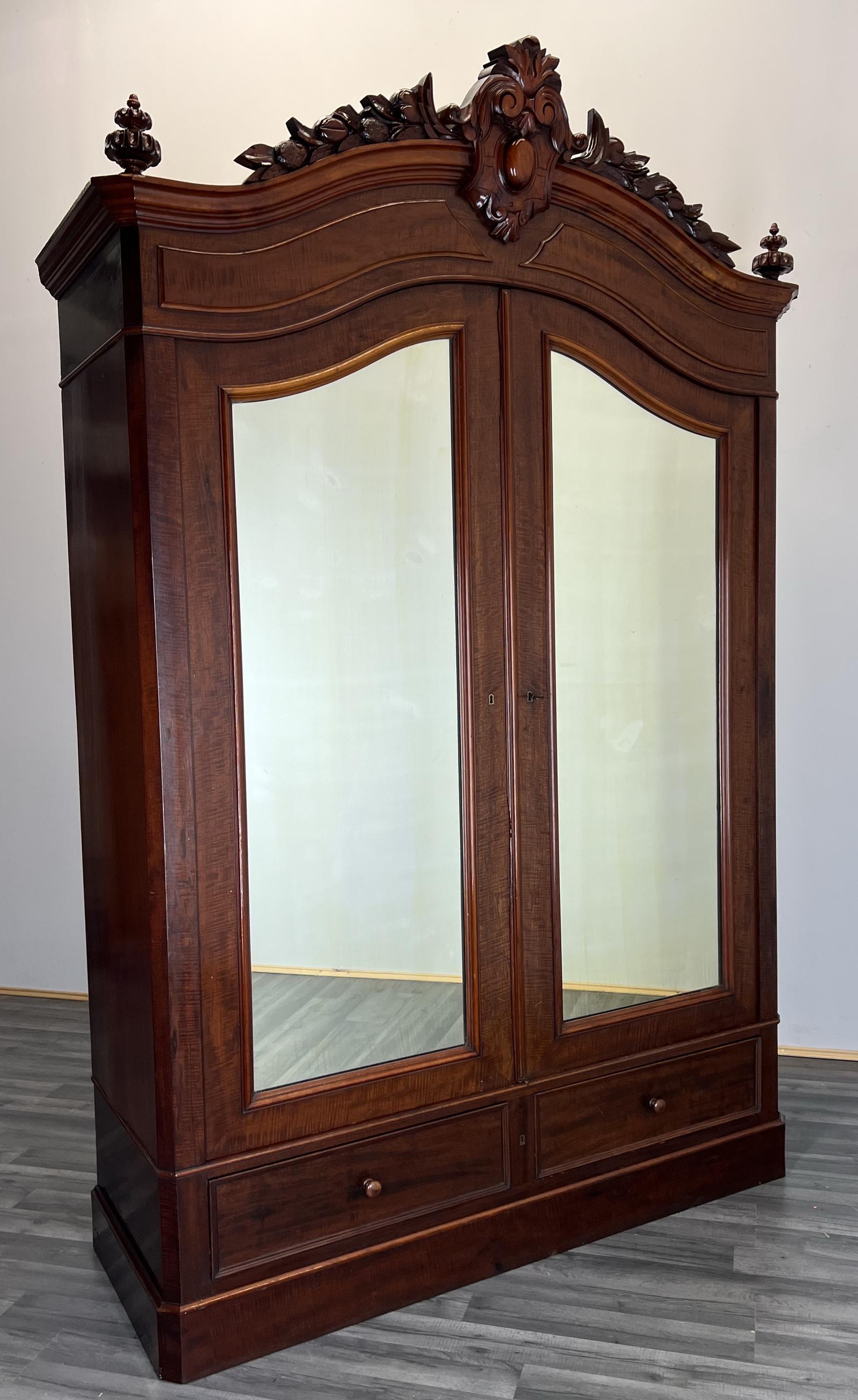Impressive Antique French Mahogany Armoire Wardrobe with Mirrors