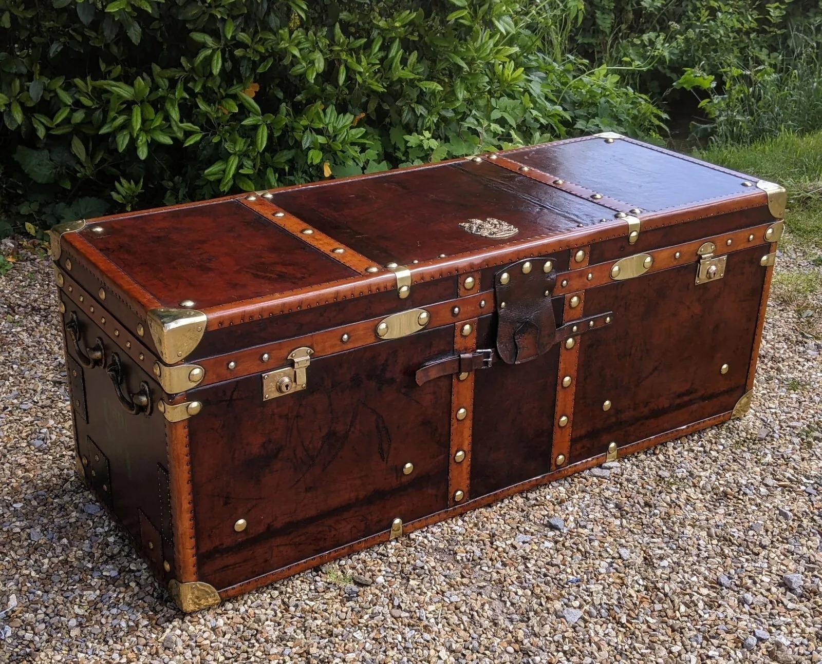 Impressive Antique Leather Trunk Chest Military (1 of 11)