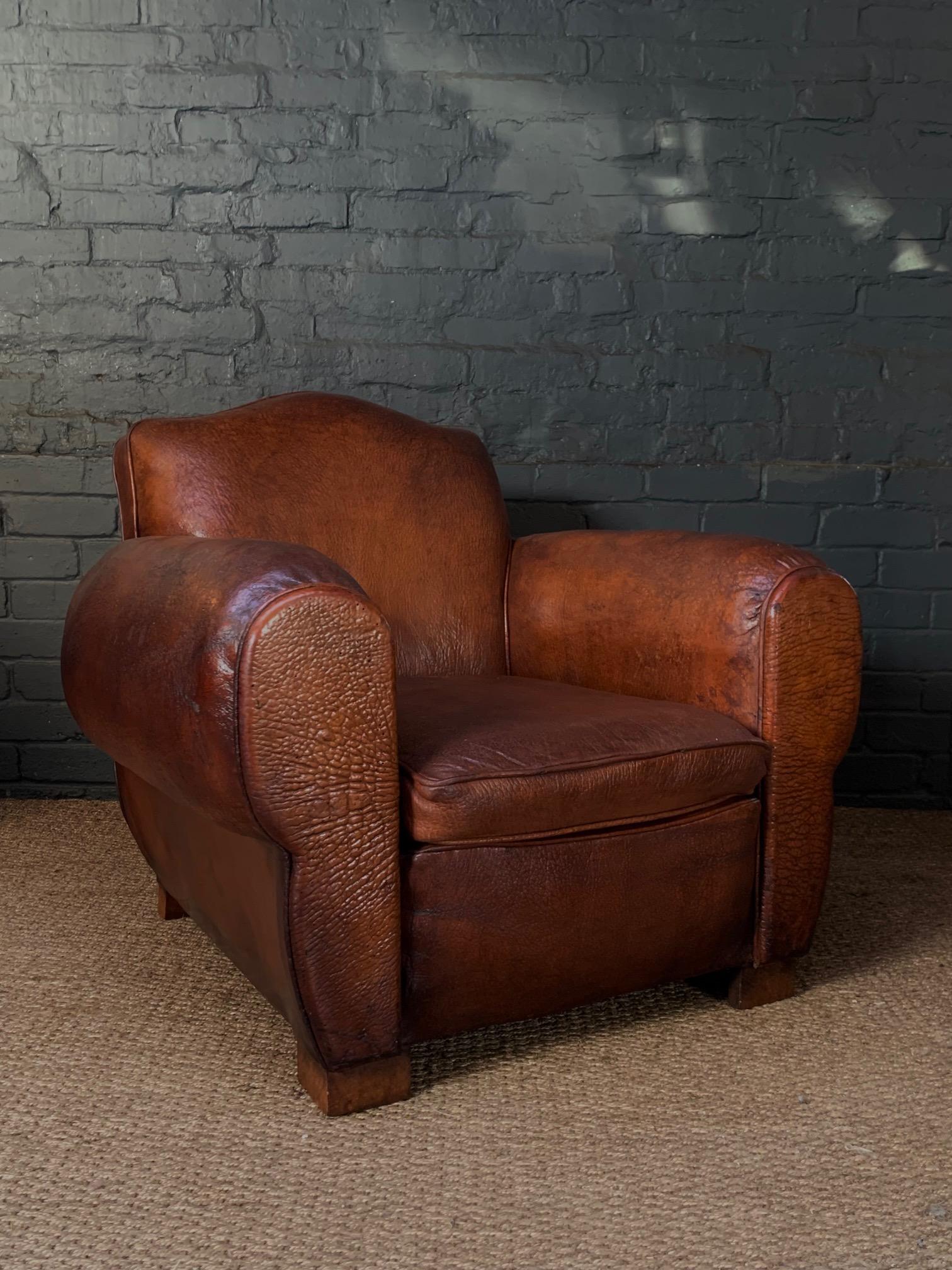 Impressive French Leather Club Chair, Chapeau du Gendarme Model, Le Giant Model with Over-stuffed Cigar Arms c.1920 (1 of 7)