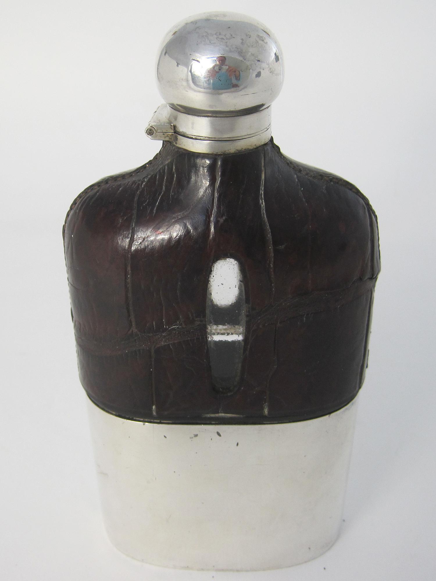 Impressive Large Crocodile and Silver Plated Hip Flask and Cup