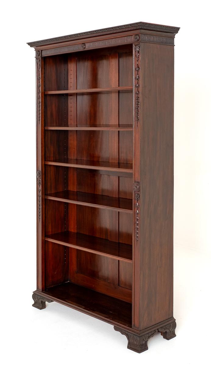 Impressive Mahogany Carved Open Bookcase